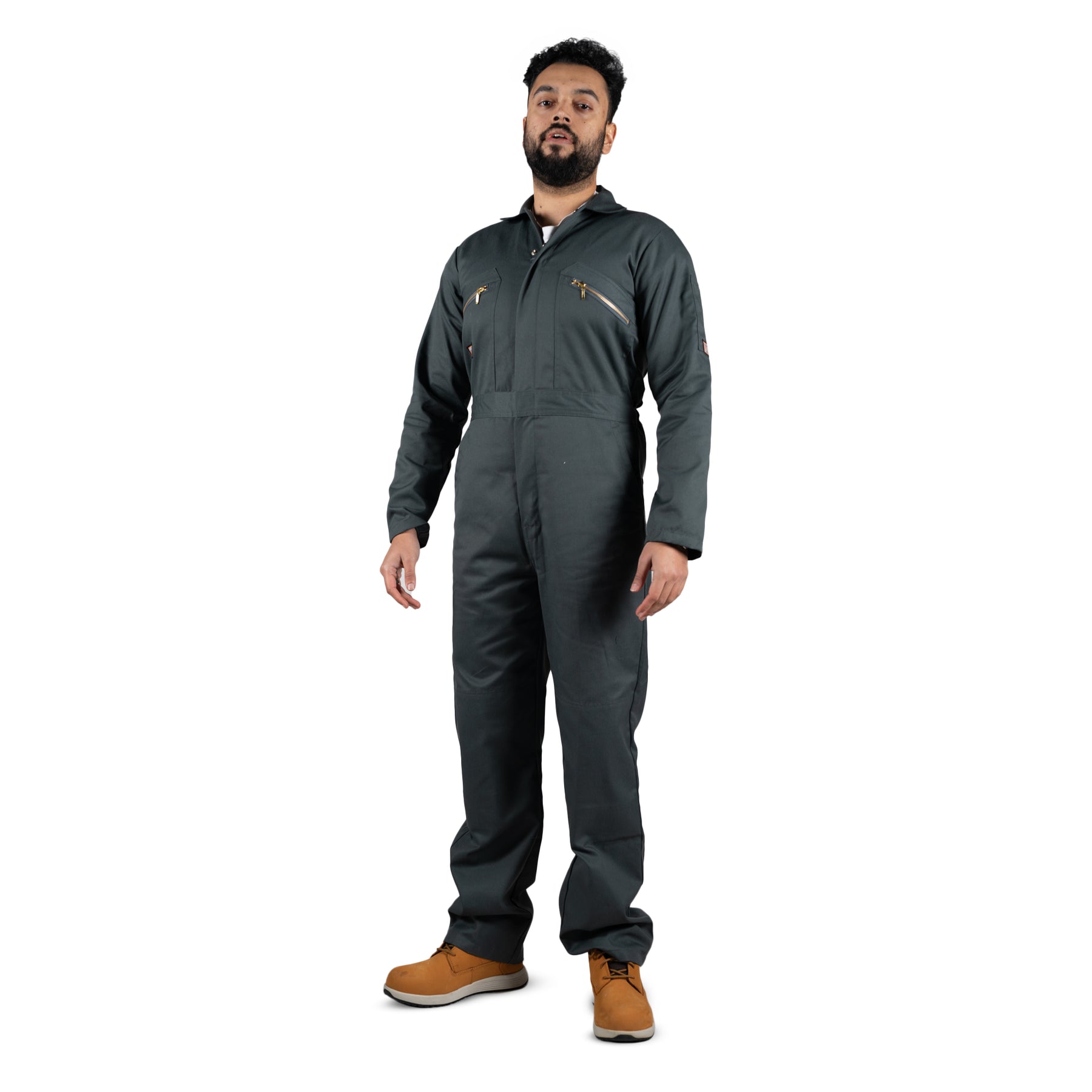 Unbreakable U271 Green Zipped Coverall. 260gm 65% Polyester/35% Cotton coveralls with two high quality YKK zip chest pockets and a concealed YKK brass zip to the front. A reinforced stretch waistband allows for greater comfort and internal loading knee pad pockets for standard sized knee pads, for knee protection.